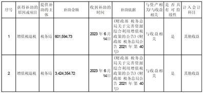 2、公司按照《企业司帐准则第16号一政府缓助》等相关章程分手政府缓助的类型。本次收到与收益干系的政府缓助4,025,949.45元,公司拟将该笔政府缓助计入其他收益。具体的司帐处分以及对公司2023年度利润产生的影响以司帐师年度审计阐发后的后果为准。敬请高大投资者在意投资风险。