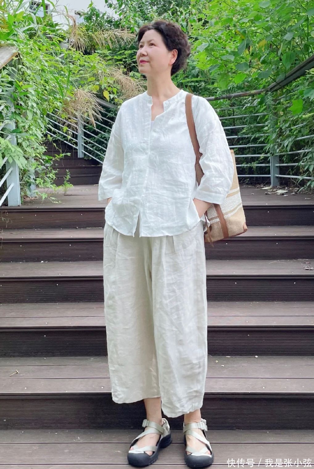 2.过膝裙跟九分裤,是中年女东谈主必不可少的两件单品,若是想要穿出愈加高档的效用,就可以从面料、元素和色调上花点心想了。