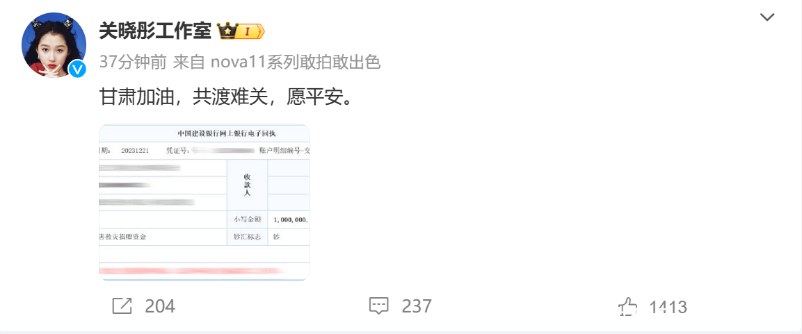 深圳平湖体育中心而女方关晓彤现在未作念出恢复,责任室在爆料出来后,还上线晒出了关晓彤为地震灾地捐钱100万的截图,但却并未说起领证一事。
