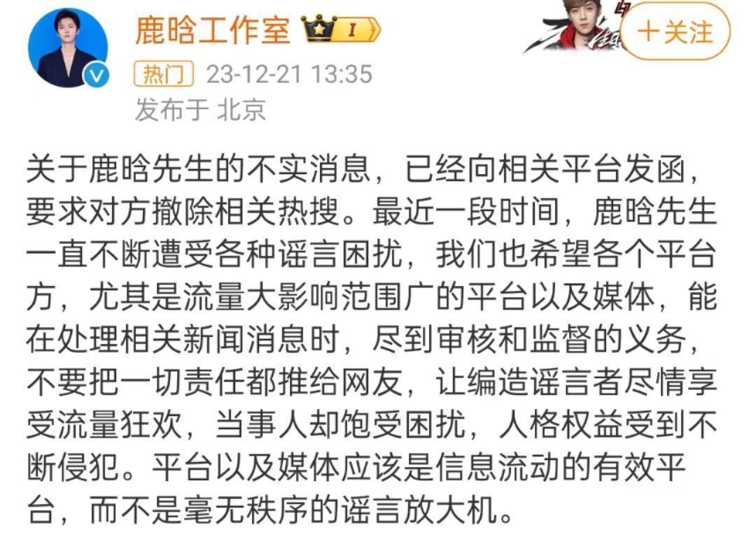 这里的编责骂言者,不知是暗指谁呢?明明是狗仔公开爆料的,鹿晗责任室却训斥平台和媒体,不知谈是何深嗜?